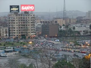 ホテルのバルコニーからの景色。ナイルビューではなかったが、悪くはない。しかし写っていない真下付近では、ビルの解体作業がされていて、バルコニーの窓を開けると砂まみれになった。